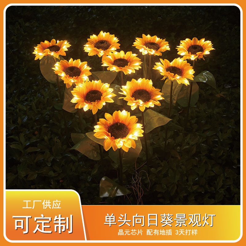 厂家批发花园景区led仿真绢布向日葵装饰灯 田园户外插地灯景观灯 补货中