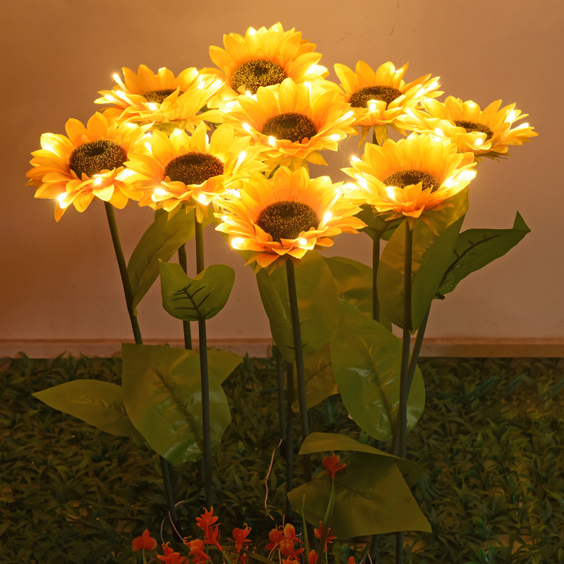 厂家批发花园景区led仿真绢布向日葵装饰灯 田园户外插地灯景观灯
