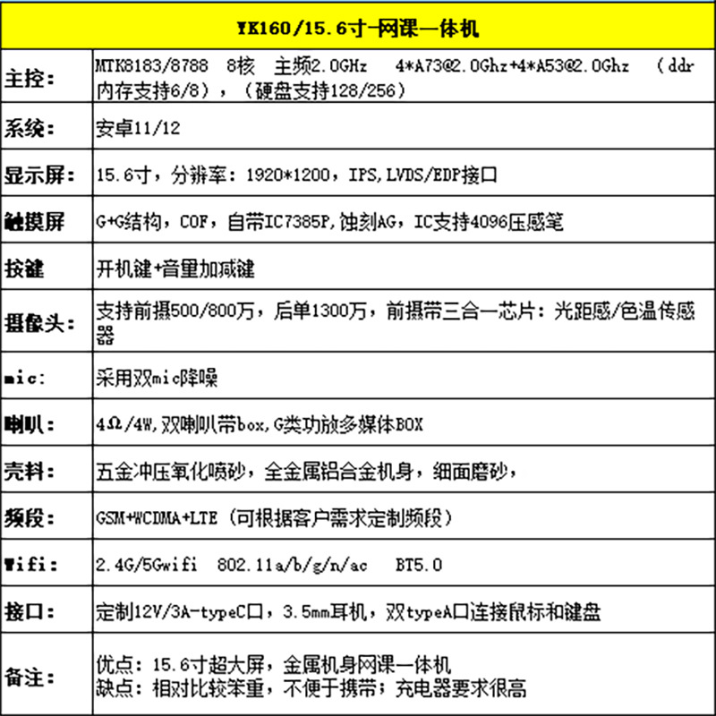 15.6寸MTK8766/8185学生网课平板电脑贴牌大屏护眼学习平板方案| 包装清单 | 15.6寸MTK8766/8187学生网课平板电脑贴牌大屏护眼学习平板方案 |