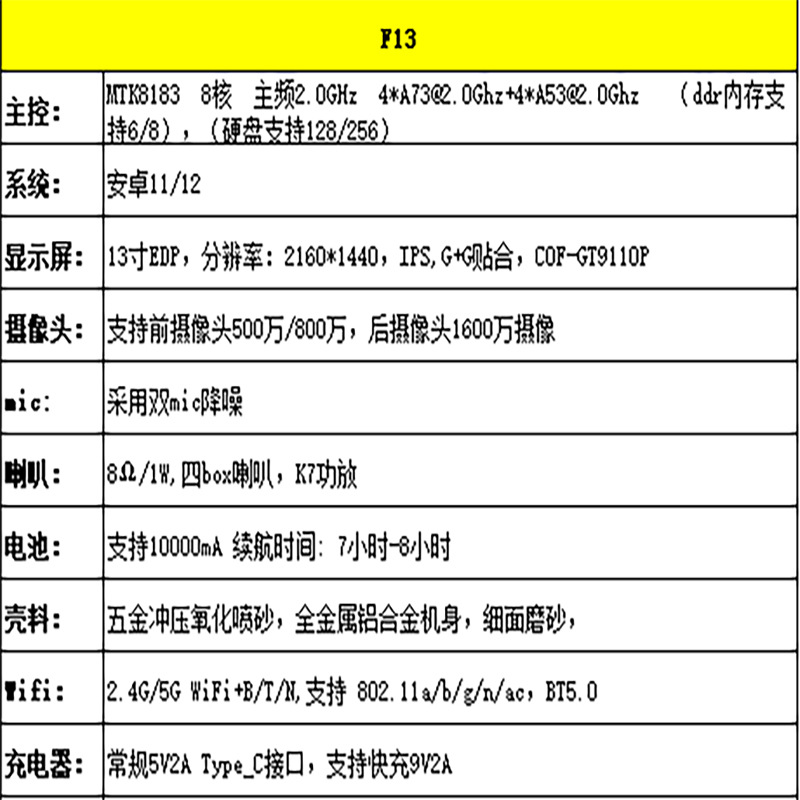 包装清单 13寸虎贲T622金属机身平板电脑方案定制全面屏八核平板厂家ODM