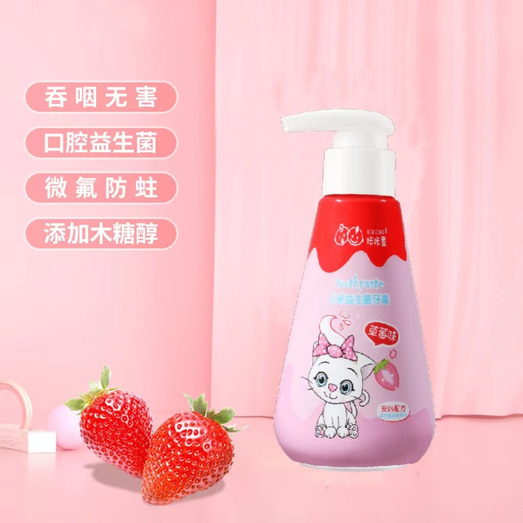 咔咔童木糖醇益生菌儿童牙膏按压式苹果草莓味护齿防蛀牙牙膏批发