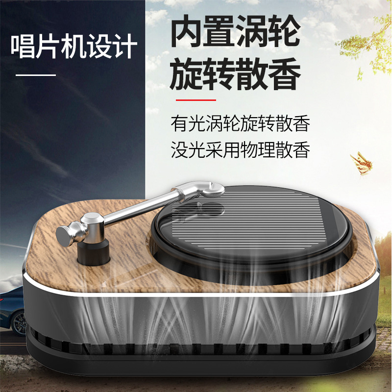 新款车载香水汽车香薰创意太阳能唱片机旋转香水车用饰品香薰摆件