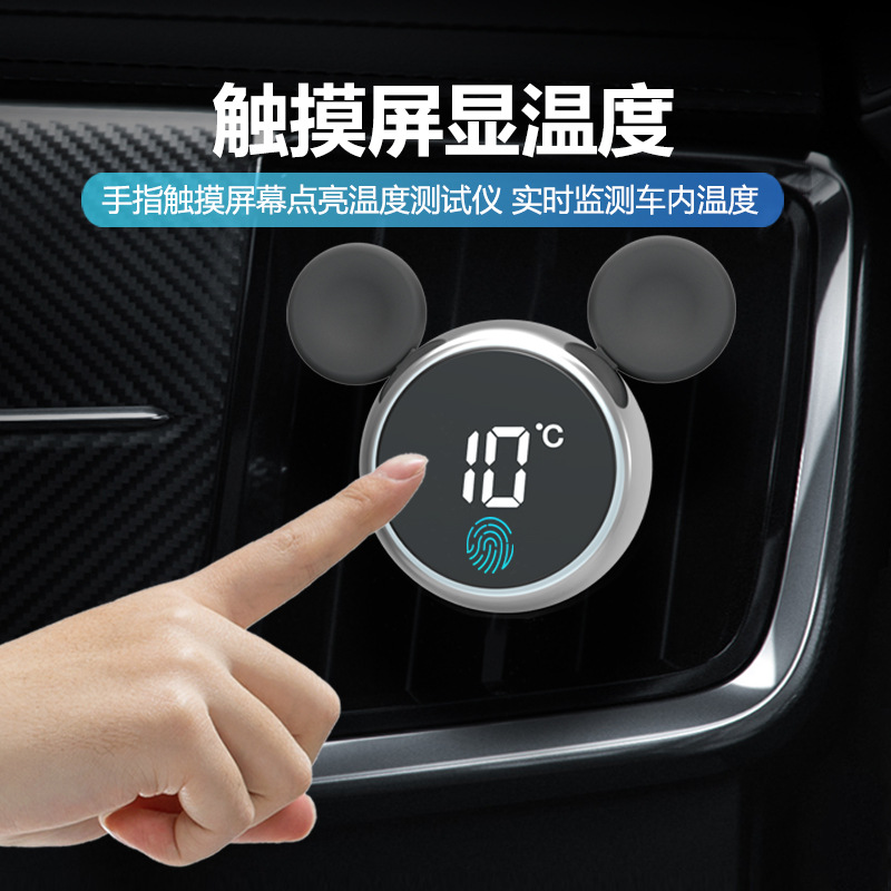 汽车香水2020新款车载温度计香薰铝合金米奇出风口固体香水夹车饰