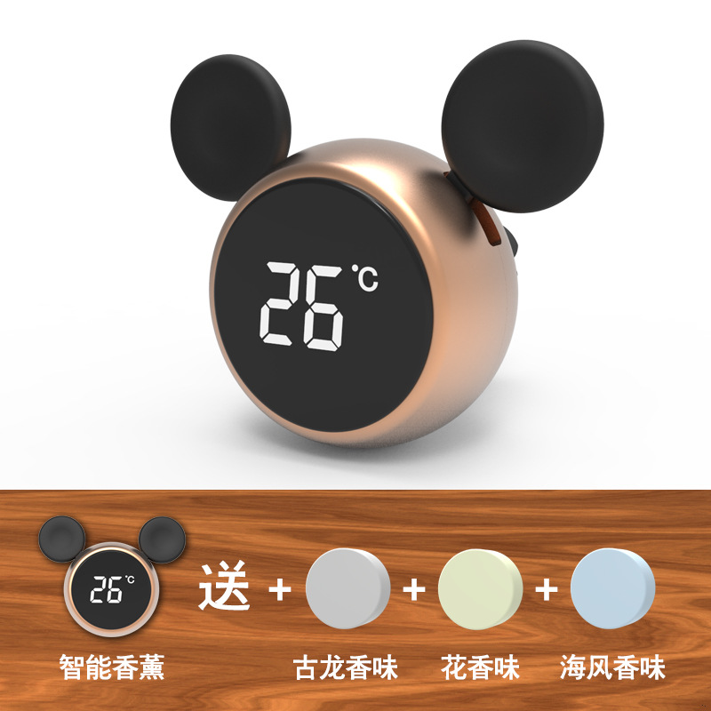 汽车香水2020新款车载温度计香薰铝合金米奇出风口固体香水夹车饰