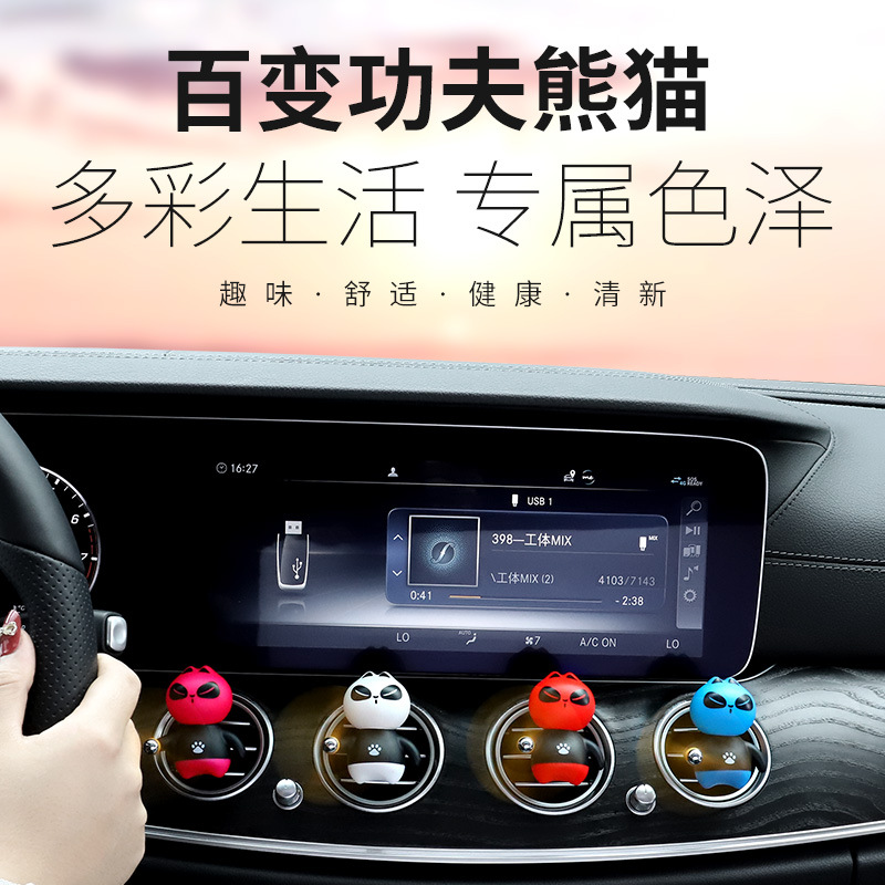 车载出风口香水车用香薰汽车香膏车内卡通公仔百变功夫熊猫风扇 补货中