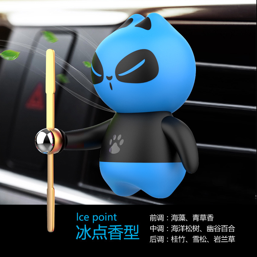 车载出风口香水车用香薰汽车香膏车内卡通公仔百变功夫熊猫风扇