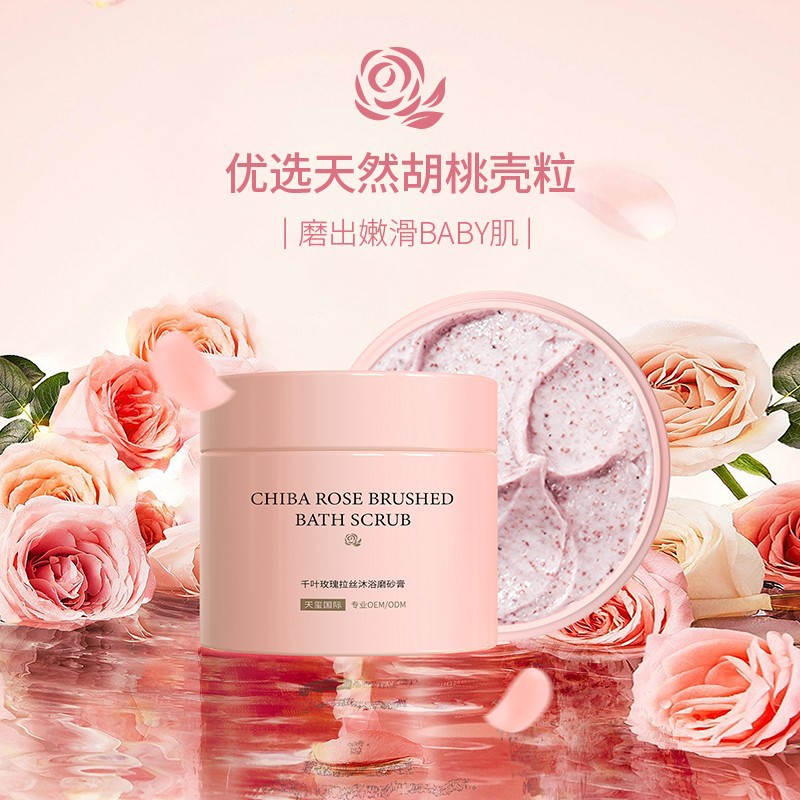 千叶玫瑰沐浴磨砂膏贴牌去角质嫩肤提亮身体磨砂膏OEMODM