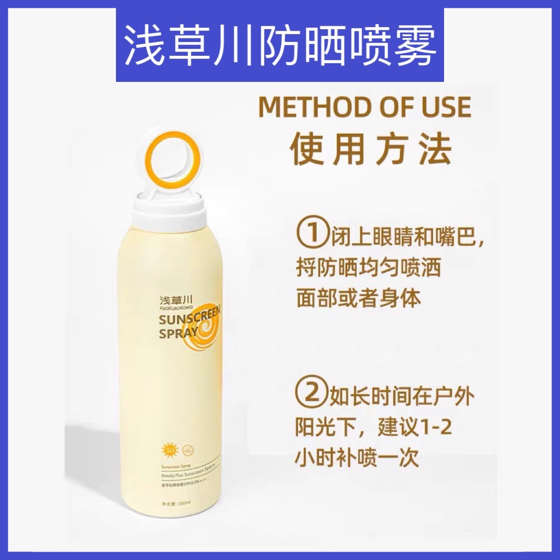 浅草川防晒喷雾清爽透明媄白脖子身体全身可用防紫外线水光美肌