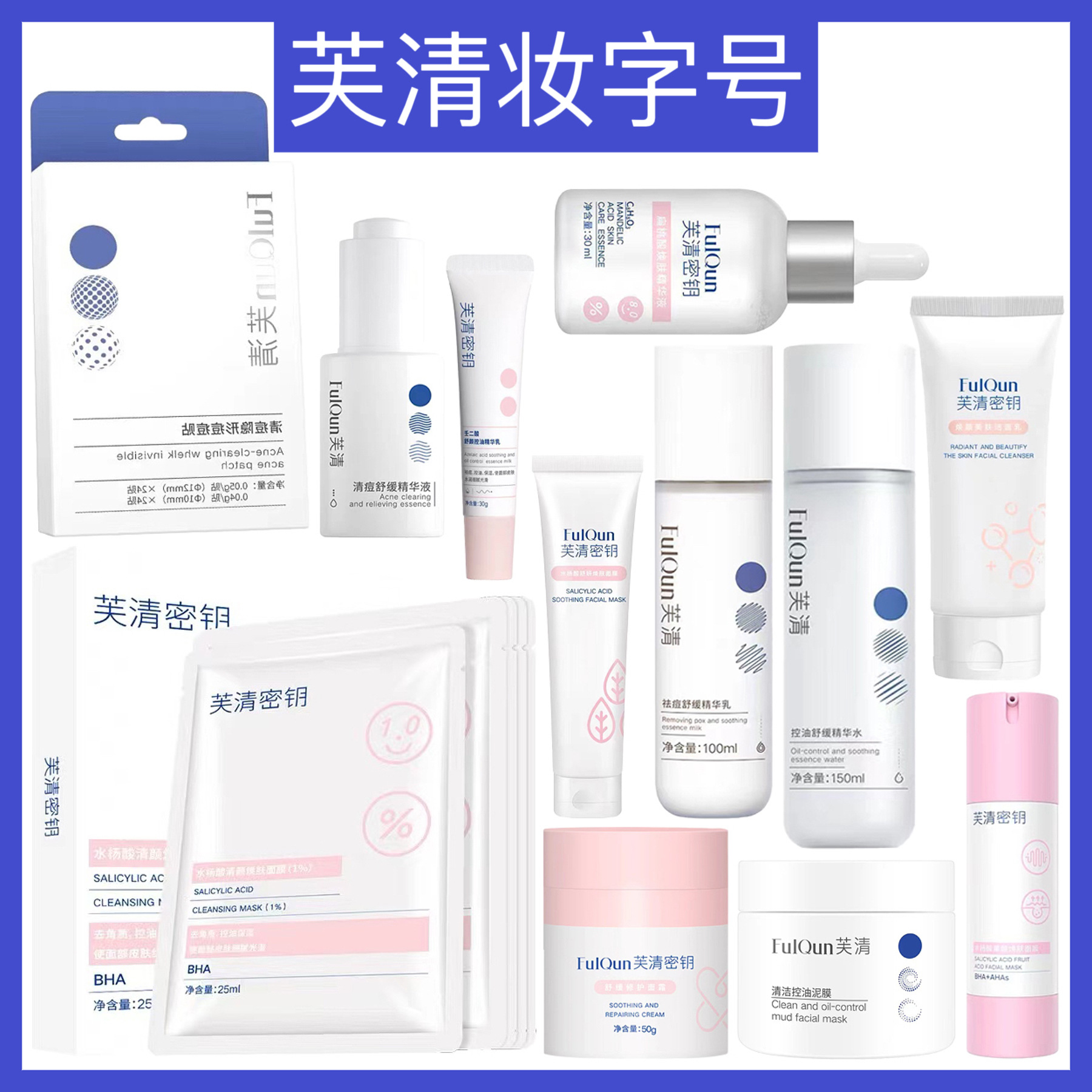 芙清妆字号)密钥涂抹祛痘水乳扁桃酸祛痘精华棉片痘痘贴洁面| 包装清单 | 芙清妆字号)密钥涂抹祛痘水乳扁桃酸祛痘精华棉片痘痘贴洁面 |