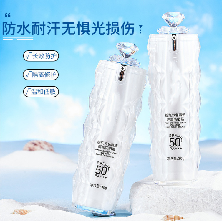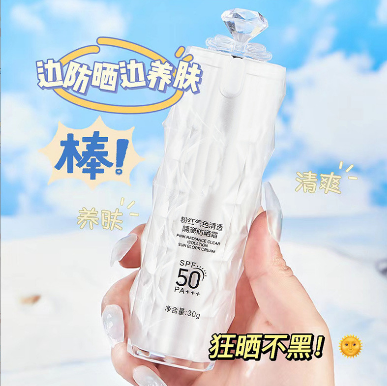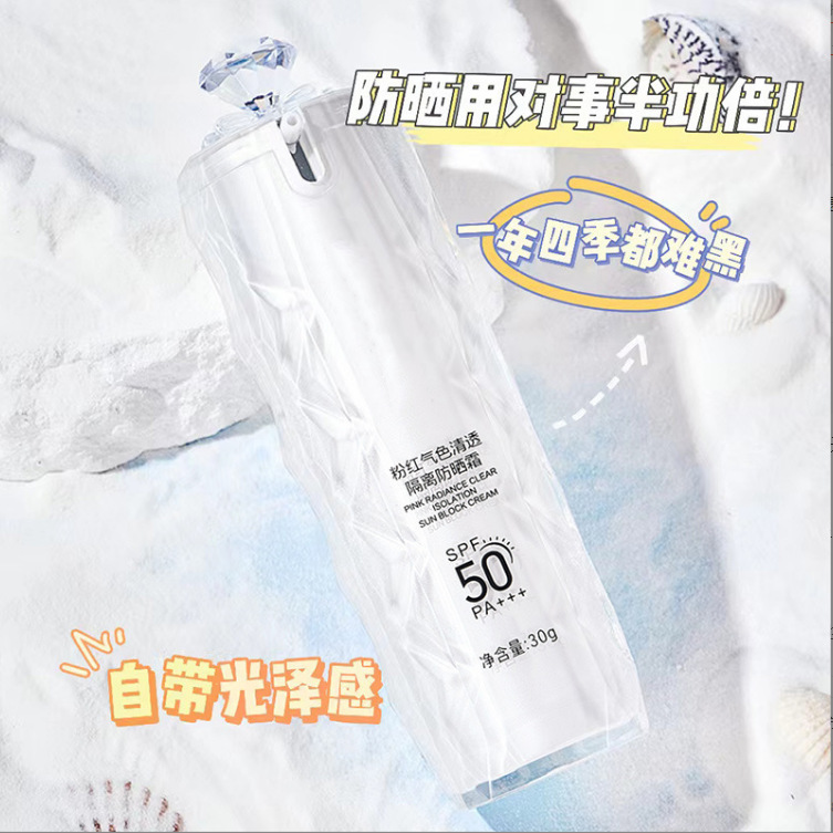 抖音同款防晒霜粉红气色清透隔离防晒乳清爽水感美白正品批发