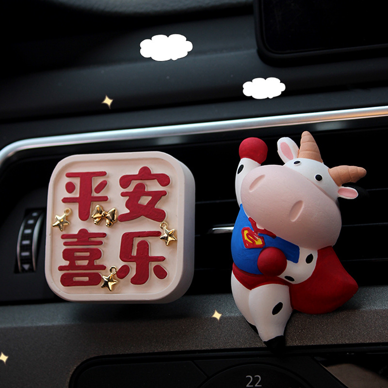 厂家批发牛气冲天平安车载香薰扩香石汽车香水车内空调出风口装饰