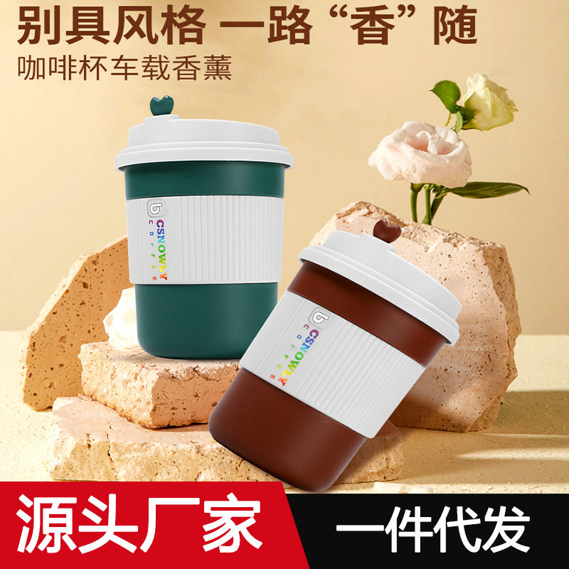 新款汽车咖啡杯固体香膏车载创意香薰摆件空气清新剂杯状香薰