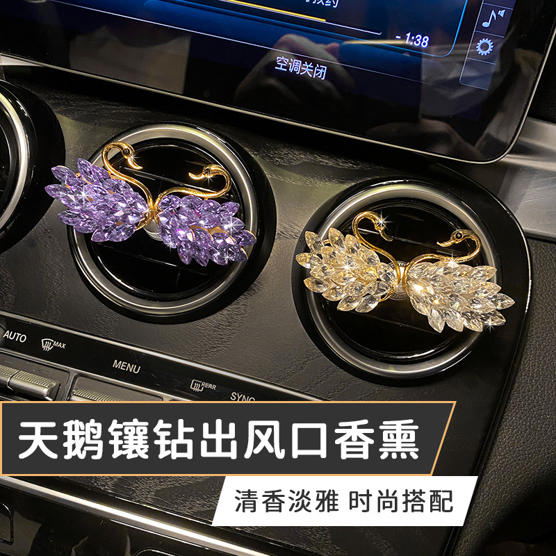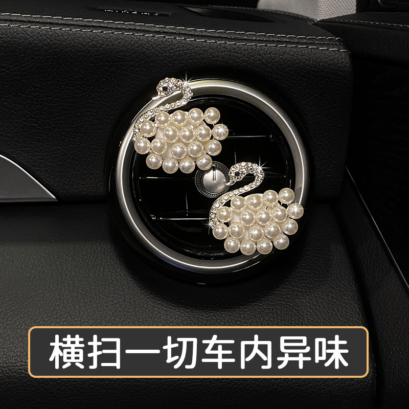 天鹅镶钻车载香薰汽车空调出风口香水珍珠天鹅车内饰品摆件批发