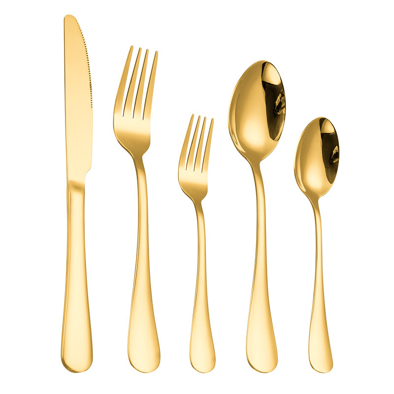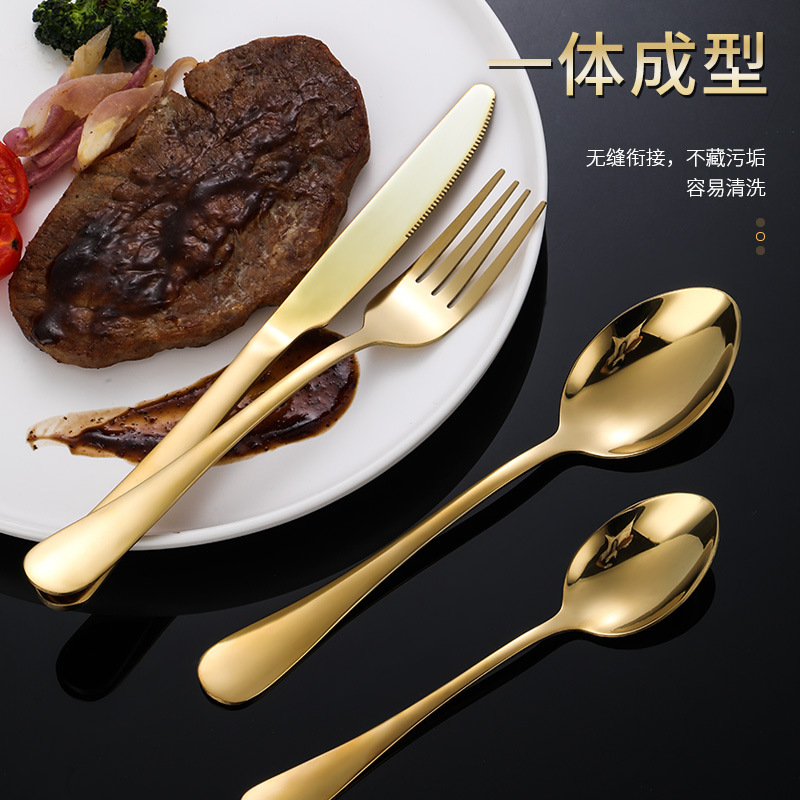 不锈钢钛金西餐具 刀叉勺五件套餐具套装货源金色-五件套