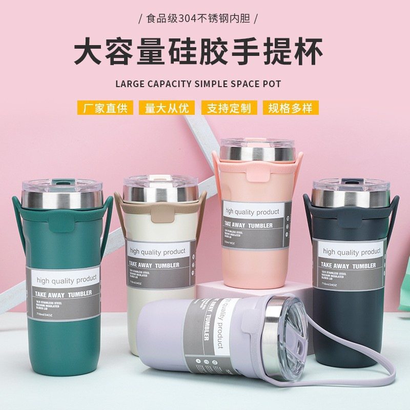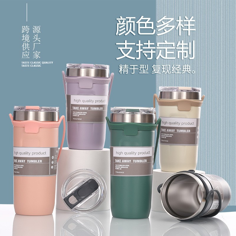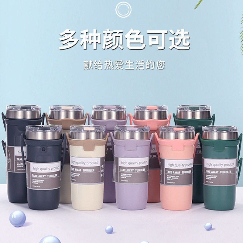 不锈钢手提绳咖啡杯真空保温户外车载便携马克白色/550ML
