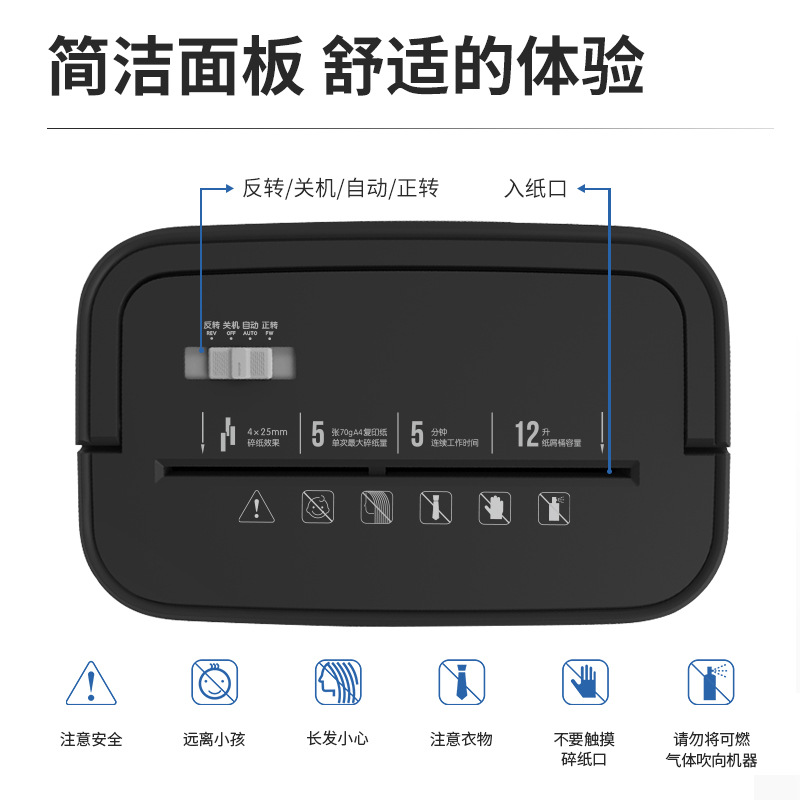 得力9939C办公自动碎纸机4级保密单次5张12L大功率5分钟可碎卡