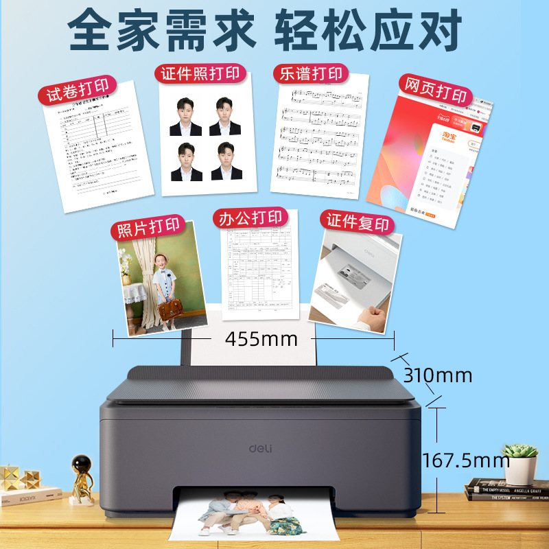 Deli printer, copier, household all-in-one machine, household small A4 connected inkjet, photo, photo, mobile wireless WI