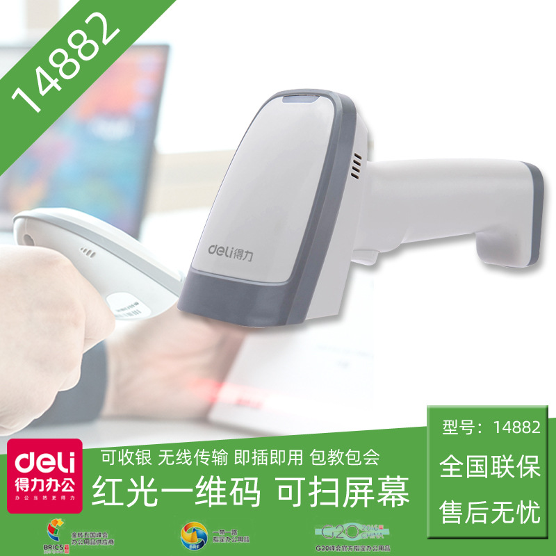 deli得力14882扫描枪有线扫码枪一维码条形码扫描器动态收款