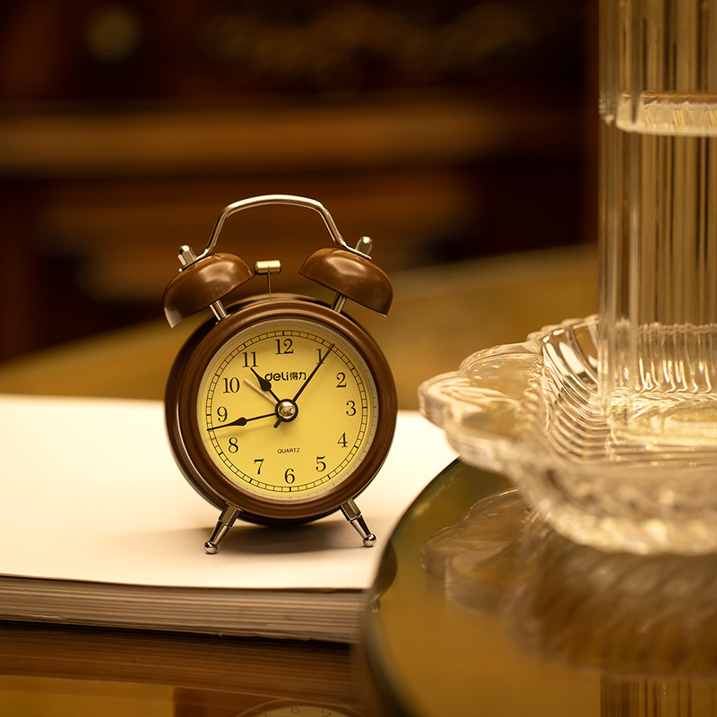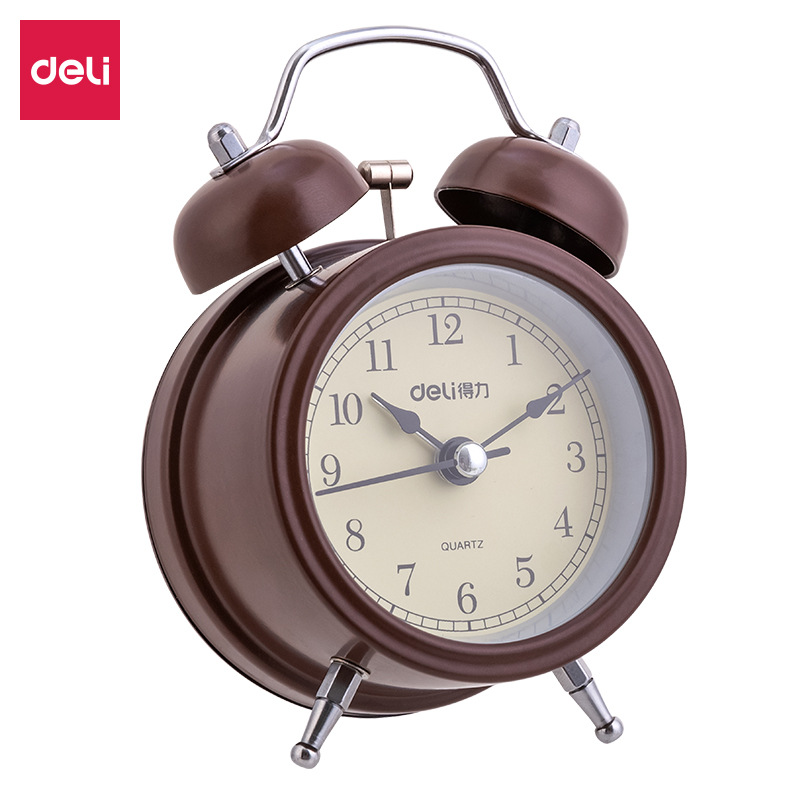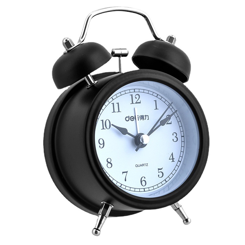 Deli Stationery 9031 Alarm Clock High end Fashion Simple Student Wake up Double Bell Alarm Desktop Silent Electronic Clock