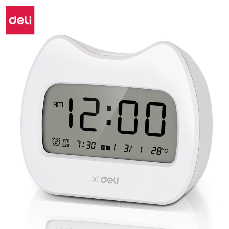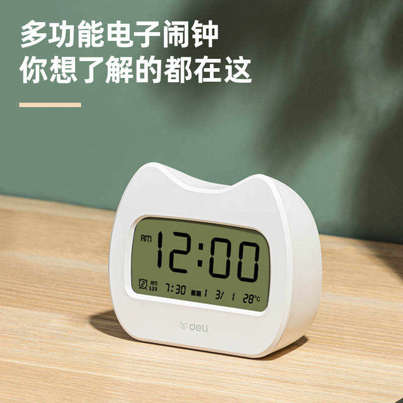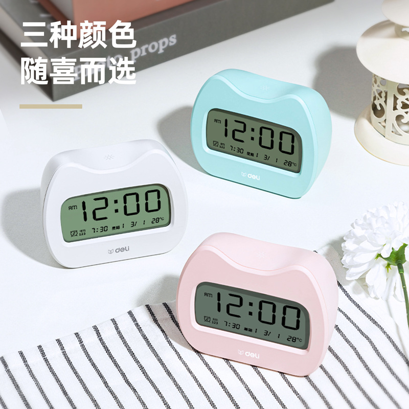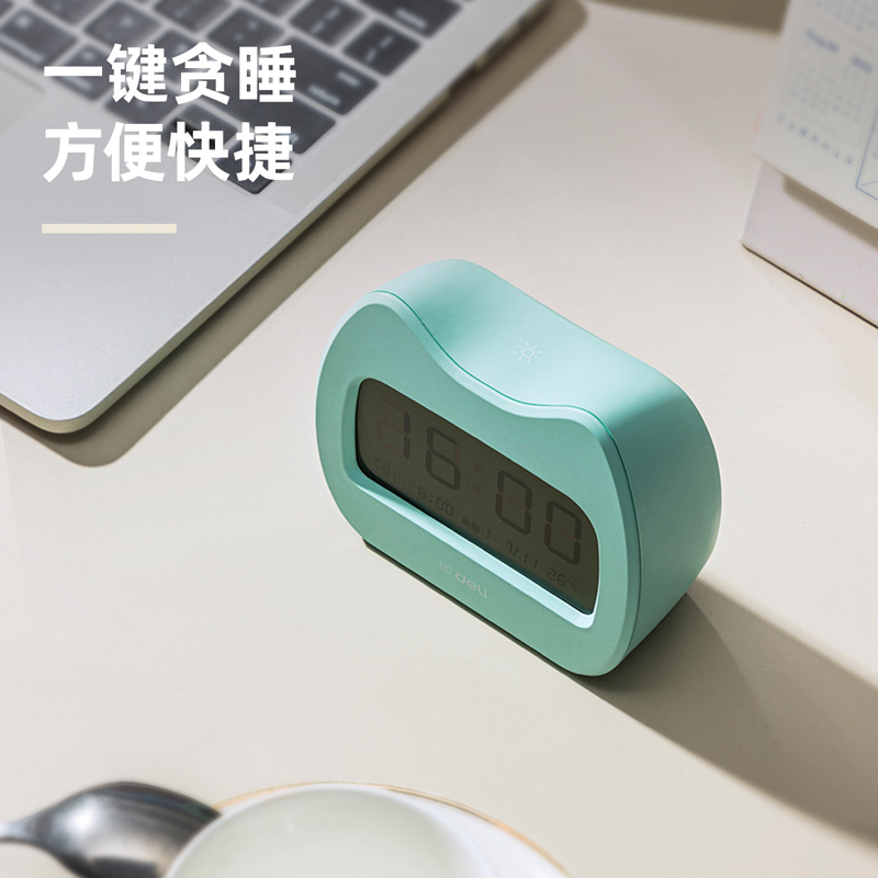 得力LE101-GN萌宠闹钟电子闹钟学生专用起床神器智能时钟多功能
