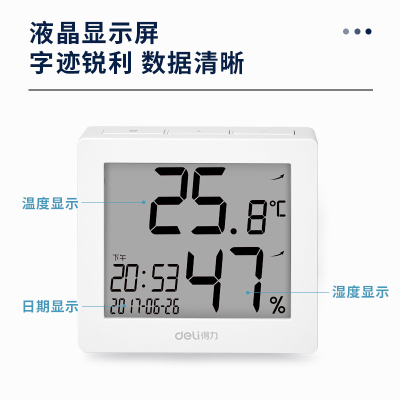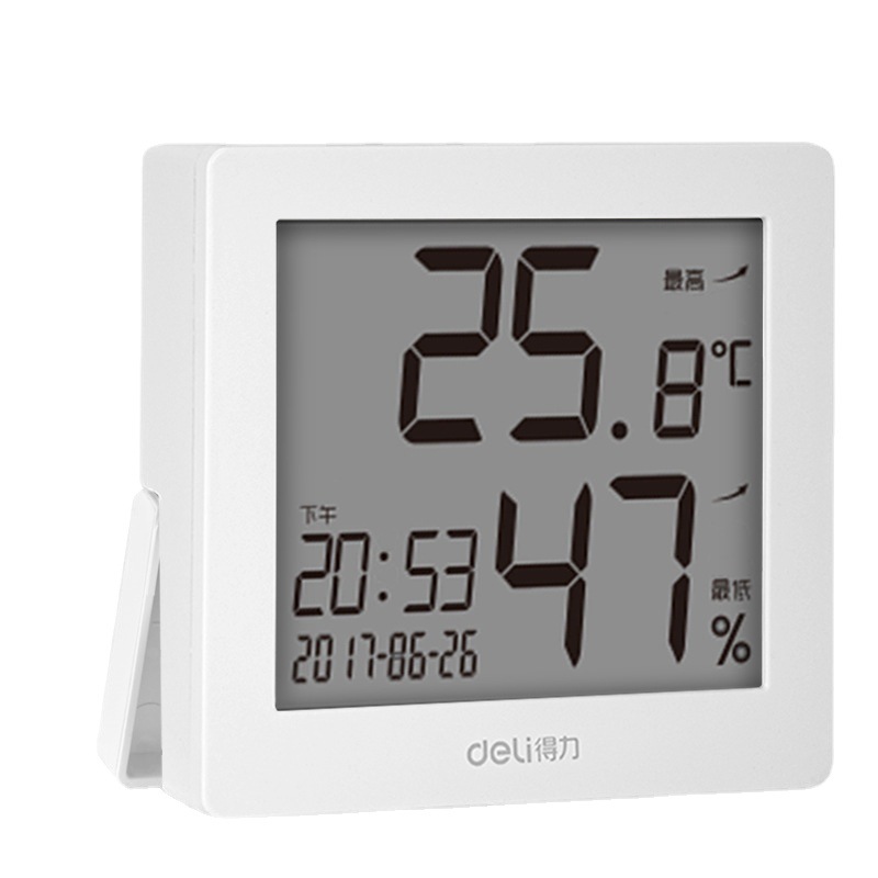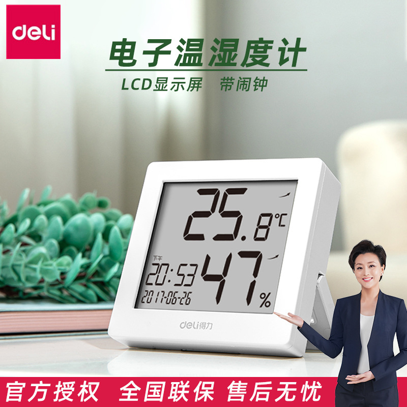 得力8813电子温湿度计多功能办公家用室内干湿温度计学生桌面闹钟