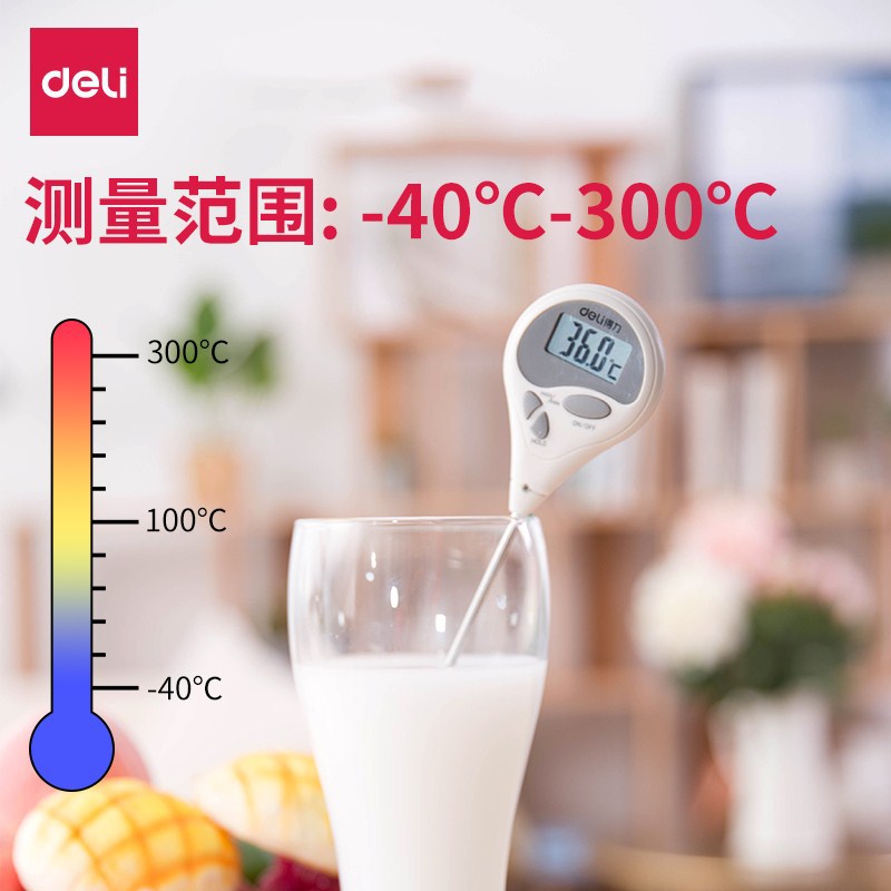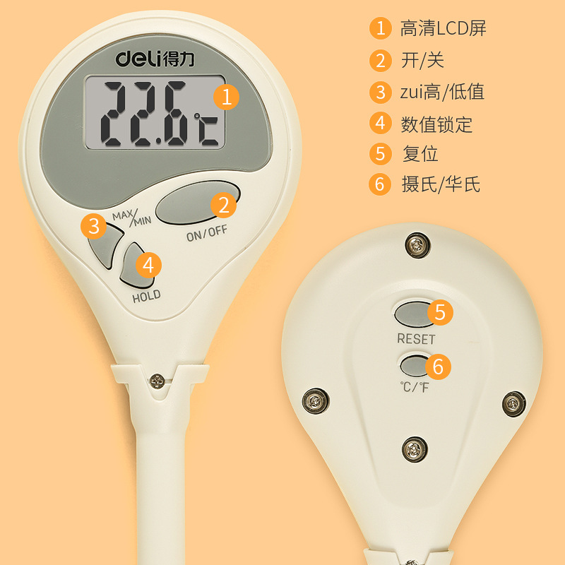 得力水温计测水温烘焙厨房食品温度计奶温油温高精度婴儿奶瓶探温