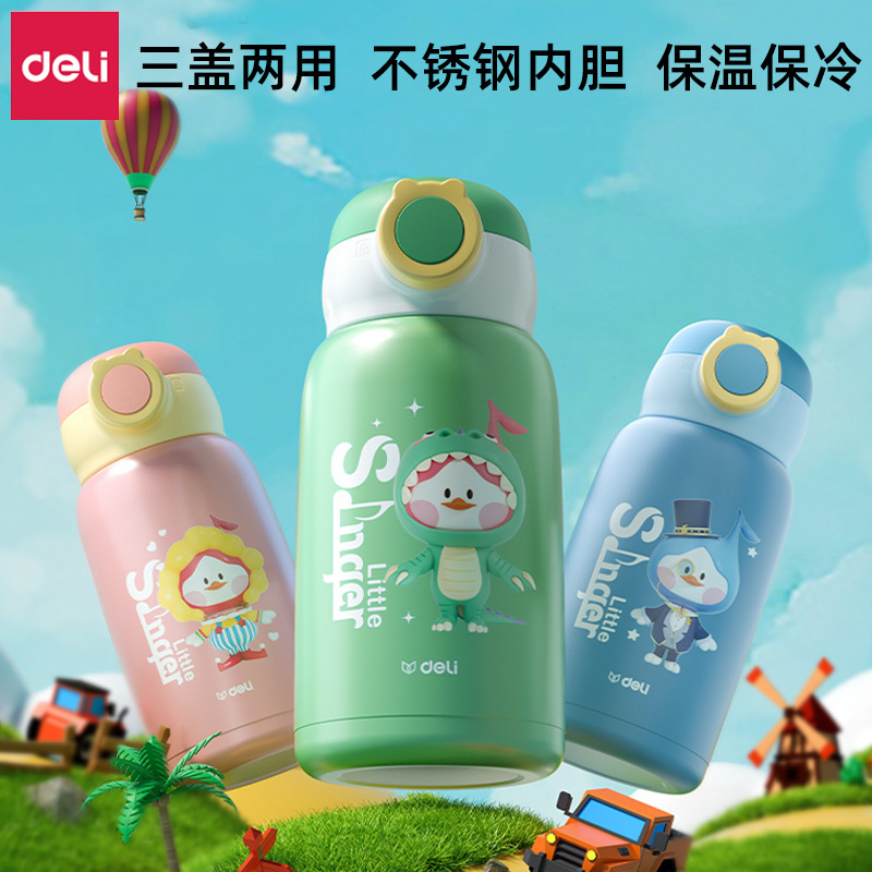Deli LL608 Children's Multi Lid Insulated Cup Gift Box Set Blue/Pink/Green 316 Stainless Steel Cup Student Gift
