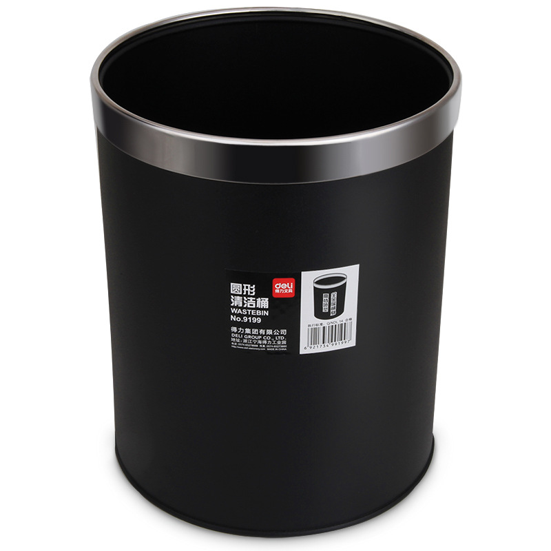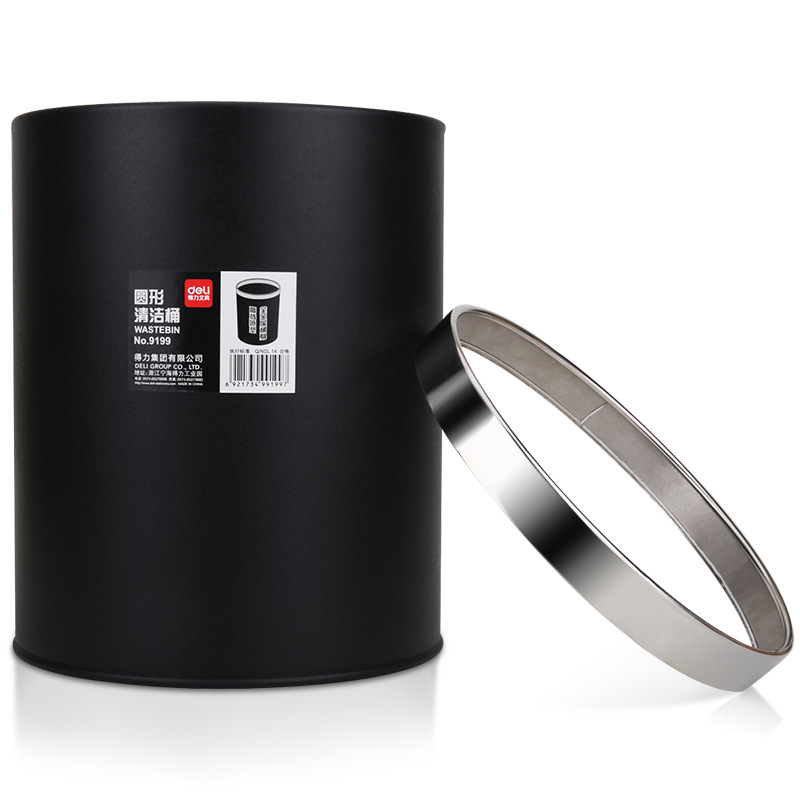 Deli Deli 9199 Cleaning Bucket Stainless Steel Ring Press Paper Basket Household Hotel Kitchen Garbage Bin Garbage Basket