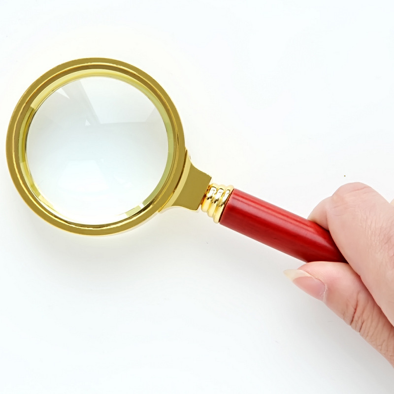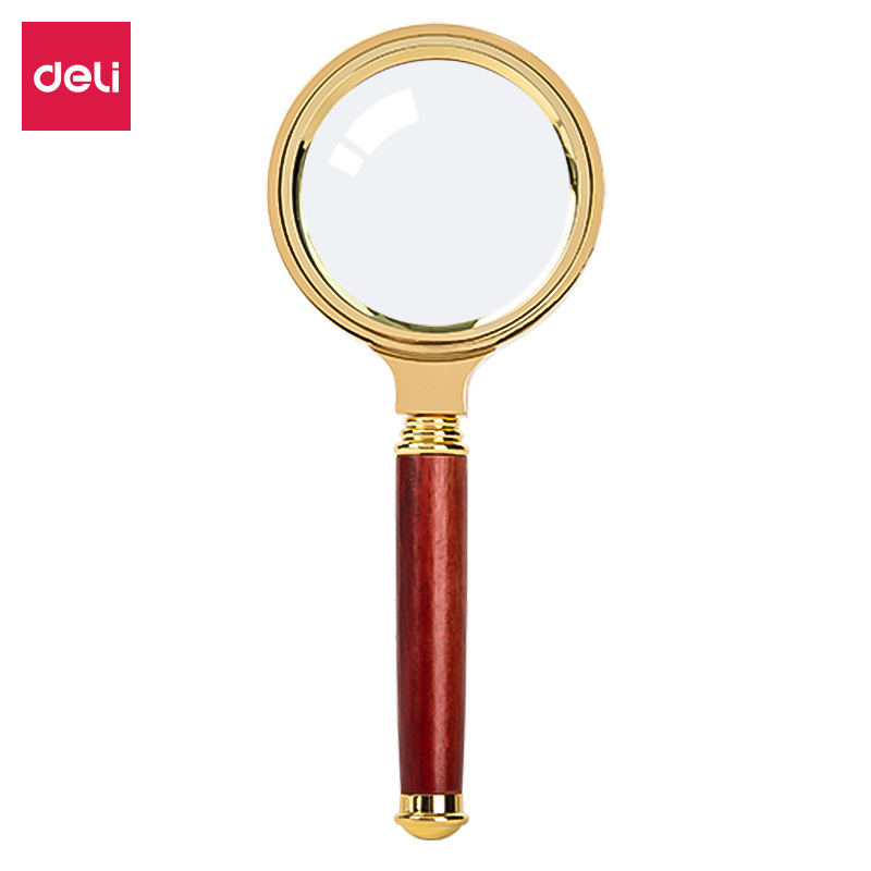 得力文具 9095金属放大镜 老人阅读全铜边红木手柄5倍放大镜50mm