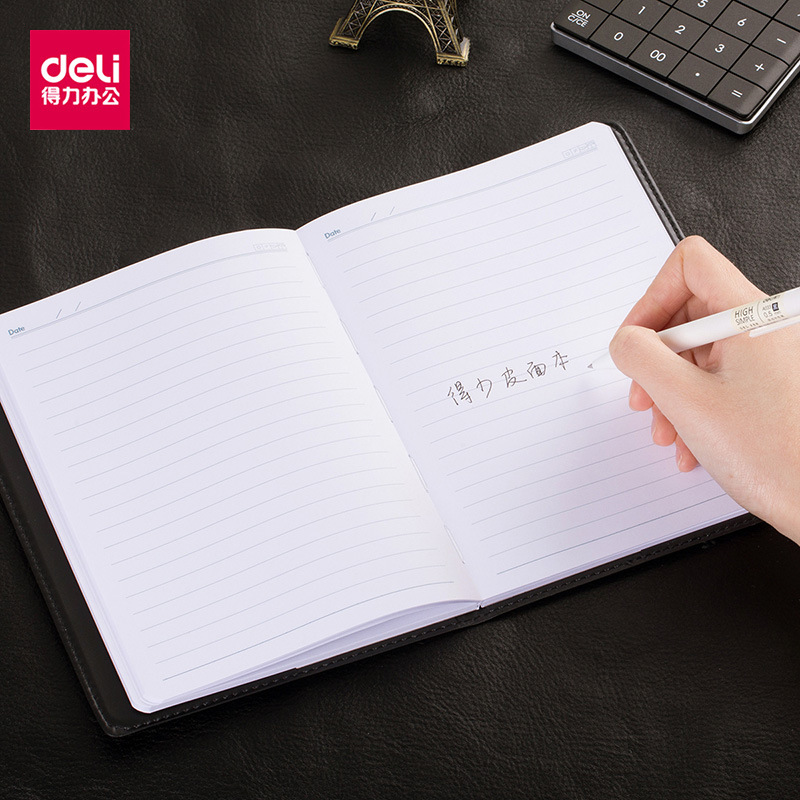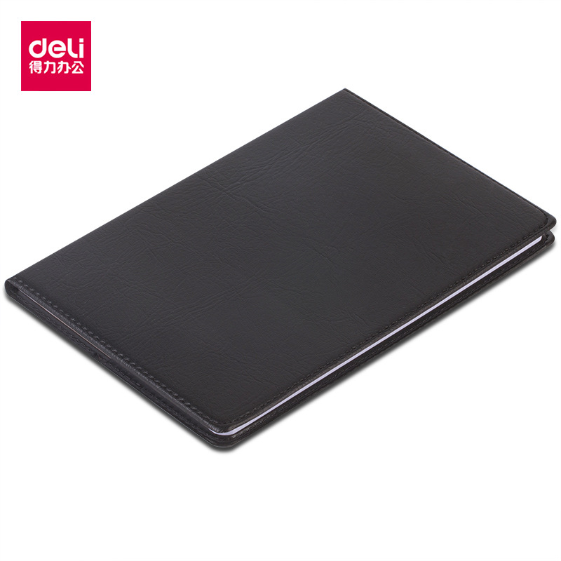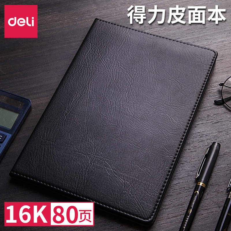 得力7900皮面抄80页硬面PU笔记本子16K会议记录记事本黑色日记本