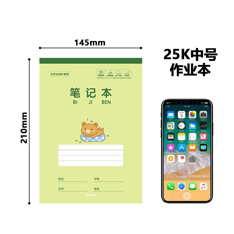 得力25K开中号作业本竖翻幼儿园拼音田字格小学生笔记英语作文本