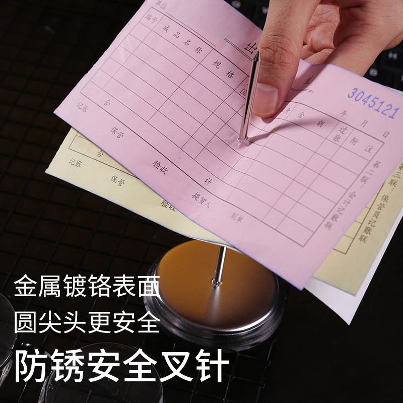 包装清单 得力0241传票叉金属票据插针收纳单据凭证财务发票银行后厨餐厅插