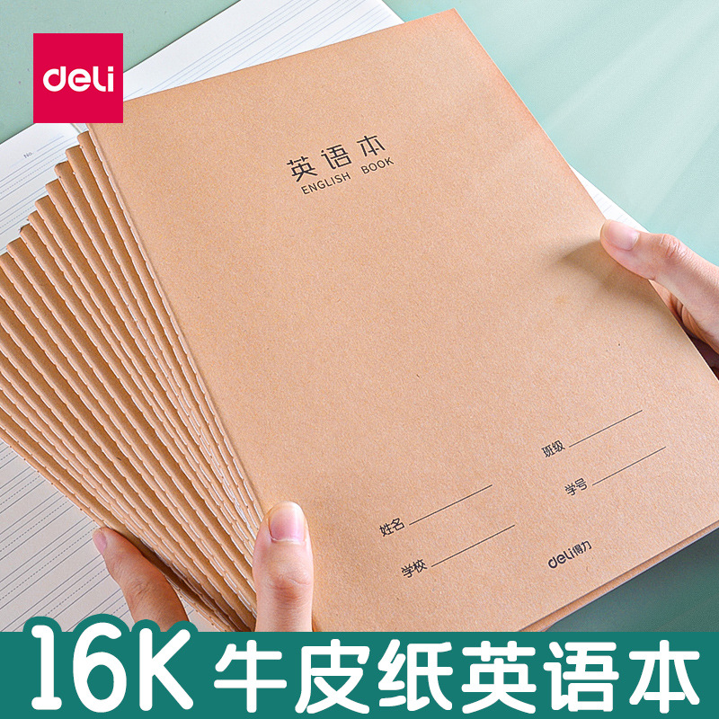 得力F1640英语本16k开小学初中生英文抄写四线三格作业牛皮练习薄