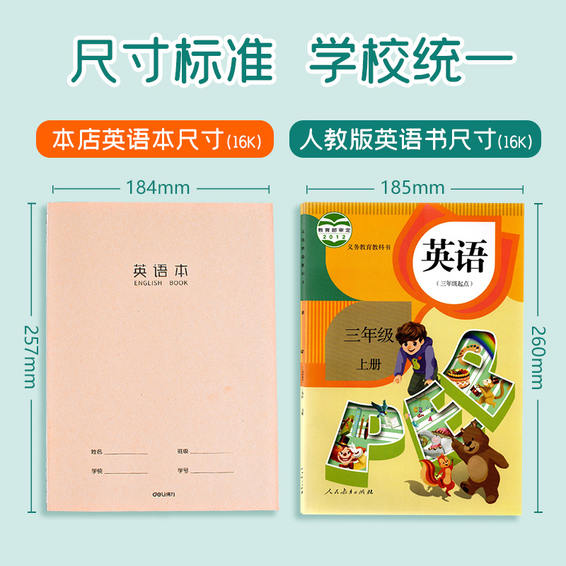 得力F1640英语本16k开小学初中生英文抄写四线三格作业牛皮练习薄| 包装清单 | 得力F1640英语本16k开小学初中生英文抄写四线三格作业牛皮练习薄 |