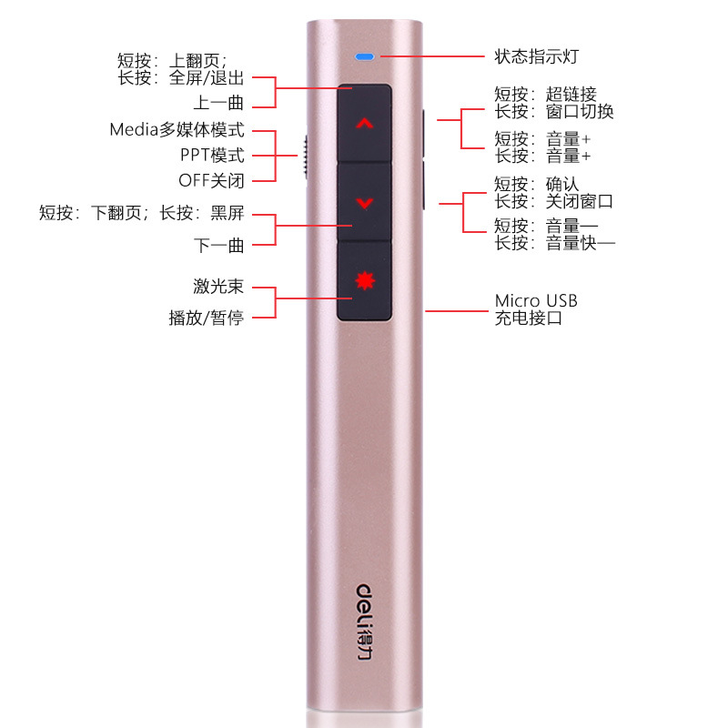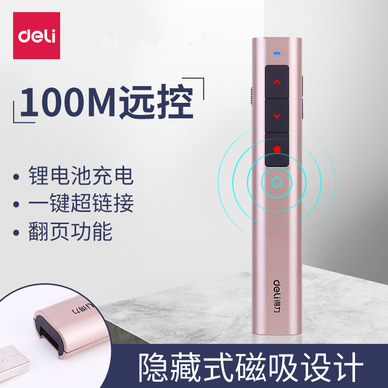 Deli 2809R Rechargeable Laser Wireless Demonstrator PPT Laser Flip Pen Projection Demonstrator Pen Red Light 100m