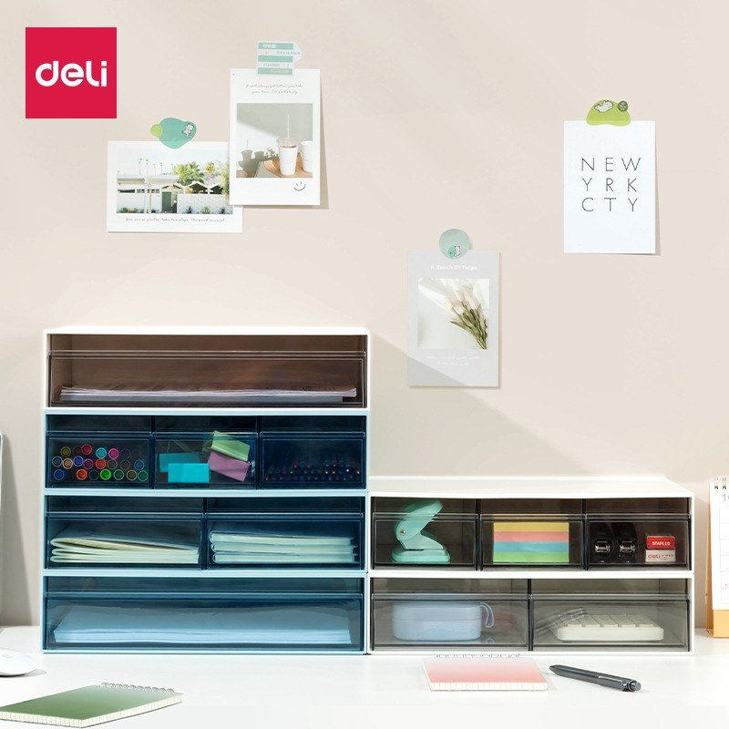得力文具PK105组合抽屉收纳盒简约创意办公可自由堆叠双层整理盒