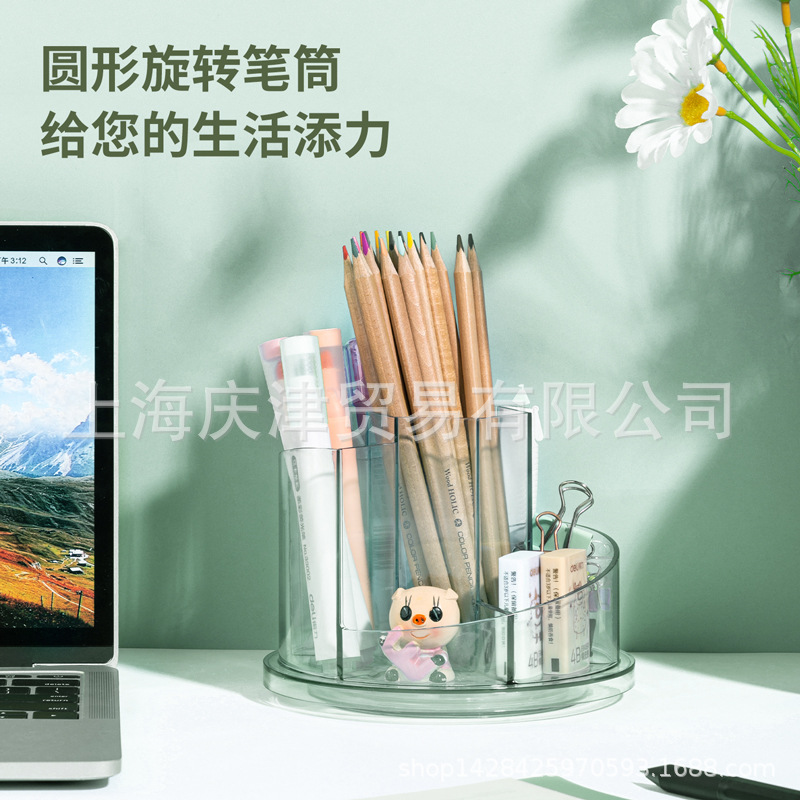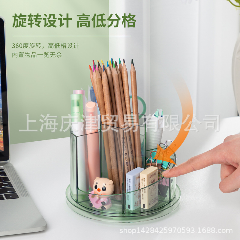 Deli 8943 circular rotary pen holder (transparent green) (box)