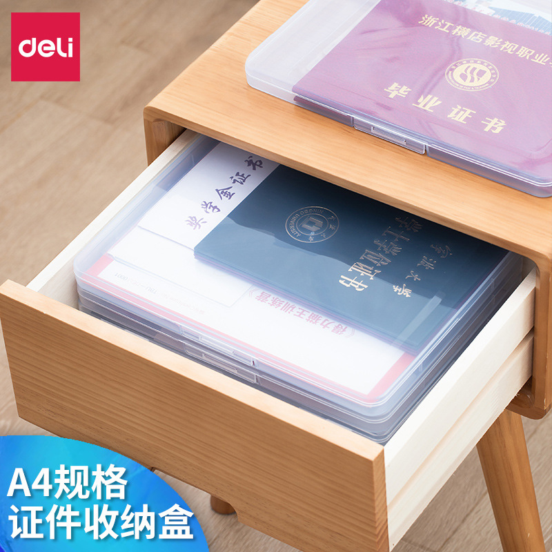 得力透明文件盒A4手提档案盒文件整理盒子透明文件盒收纳证件盒