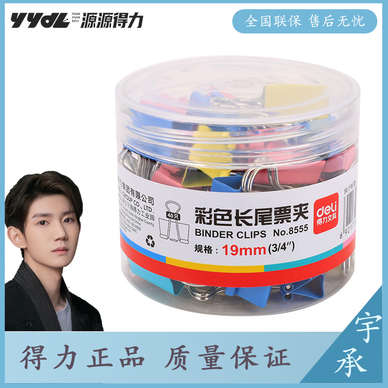 deli得力40只/筒19mm彩色长尾票夹5#金属票据夹燕尾夹铁夹子8555| 包装清单 | deli得力40只/筒19mm彩色长尾票夹5#金属票据夹燕尾夹铁夹子8555 |