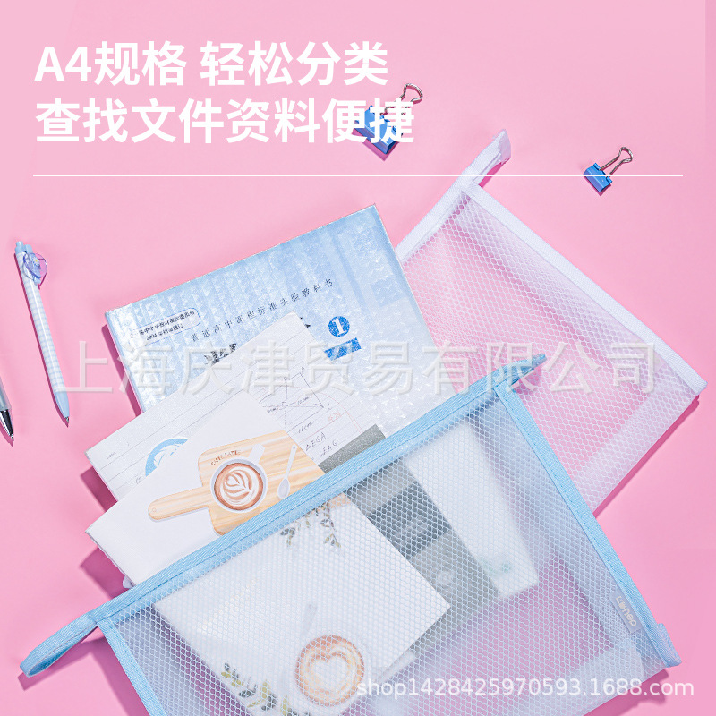 Deli 72466 A4 mesh zipper bag (mixed) (two color design 330 * 55 * 235mm)