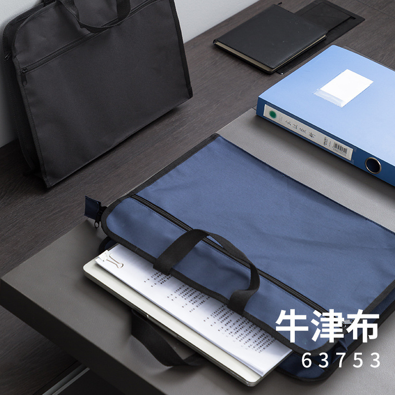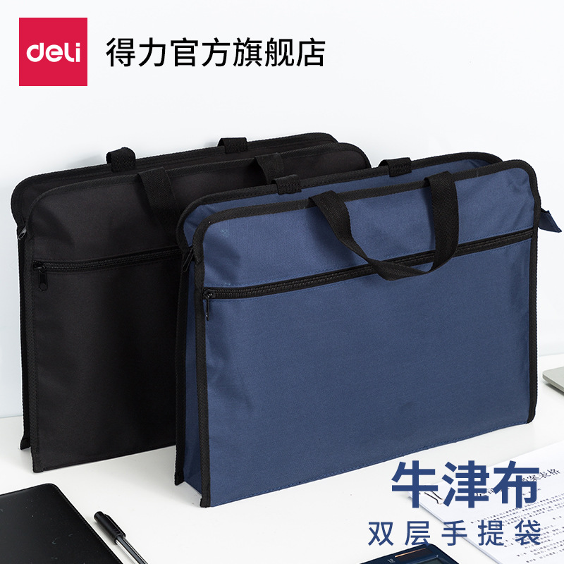 得力63753手提拉链包 男士商务包电脑包帆布袋 简约时尚资料袋
