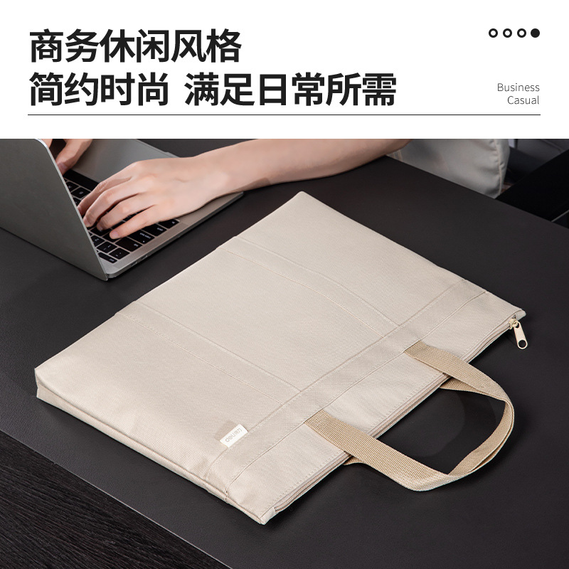 得力63788公文包拉链手提袋文件袋手提包时尚款米色灰色手拎包