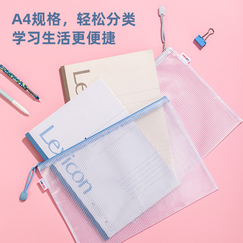 【 10 Pack 】 Deli a4 Document Bag Zipper Transparent Document Storage Bag Zipper Bag Subject Classification Bag Large Capacity Waterproof