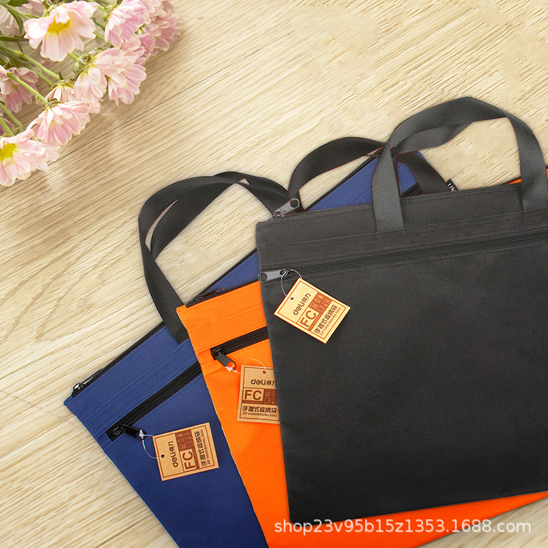 Deli document bag, handbag, official document bag, thickened canvas zipper bag, document storage bag, business computer bag, official document