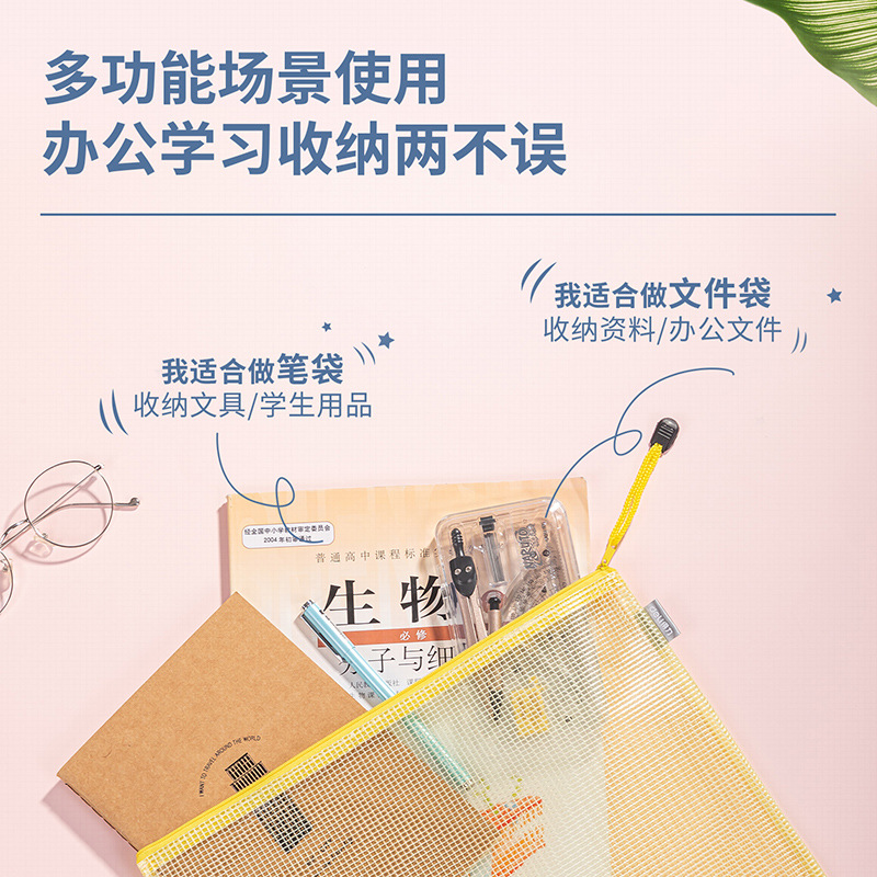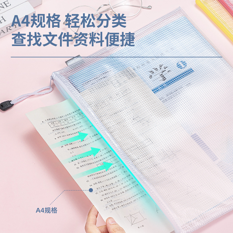 得力33414-A4试卷袋办公档案袋学生文具袋考试物品收纳网格拉链袋