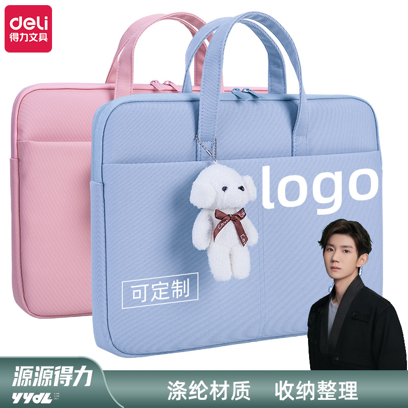 Deli 63756 Zipper Bag 14 inch Large Capacity Storage Bag Computer Bag Thickened File Bag Pull Rod Bag Design