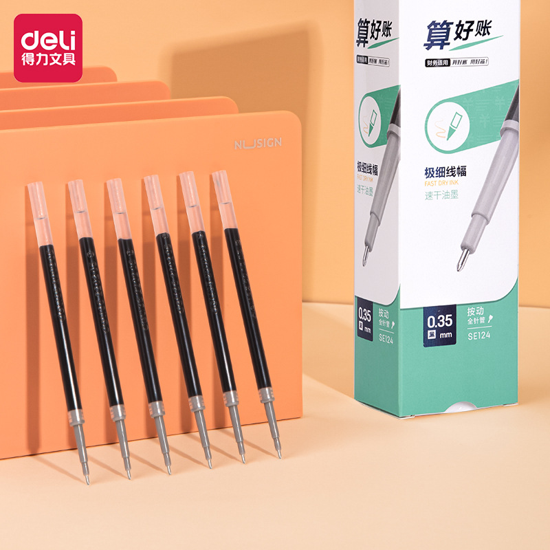 Deli SA130 Quick Drying Financial Neutral Pen 0.35mm Full Needle Tube Financial Special Neutral Pen Replacement Core Transparent Oil