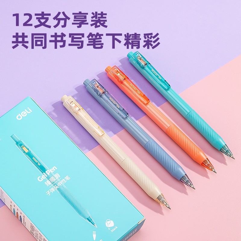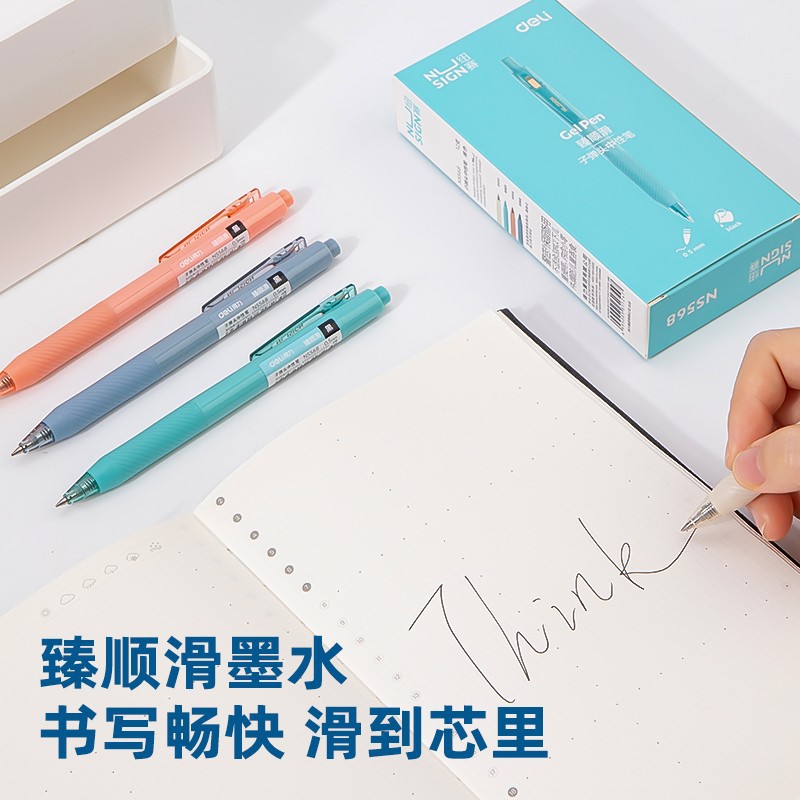 Deli NS568 Nusselt Smooth Macaron Office Button Neutral Pen Signature Pen 0.5 Black Bullet Head