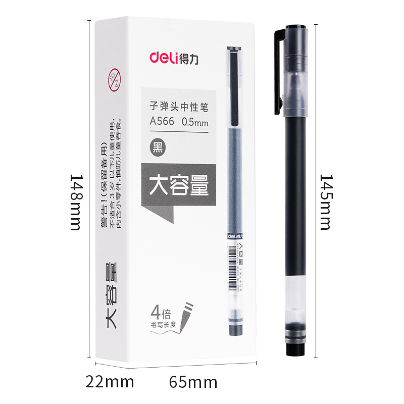 包装清单 得力A566笔中性笔文具大容量学生考试用0.5mm子弹头签字笔批发