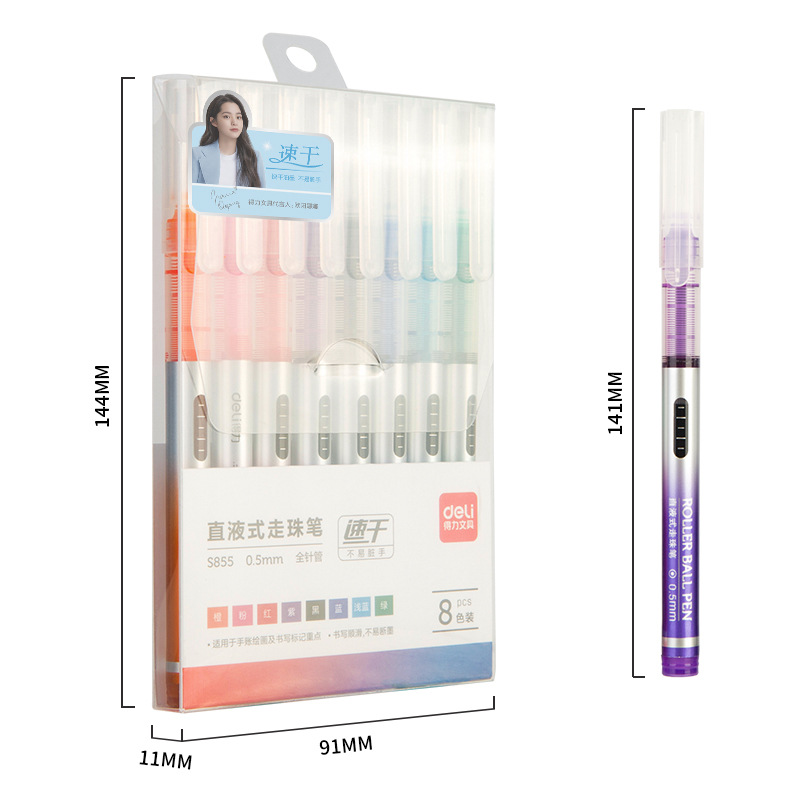 Deli S855 Straight Liquid Ball Pen Quick Dry Full Needle Tube Neutral Pen Color Creative Examination Water Pen Signature Pen